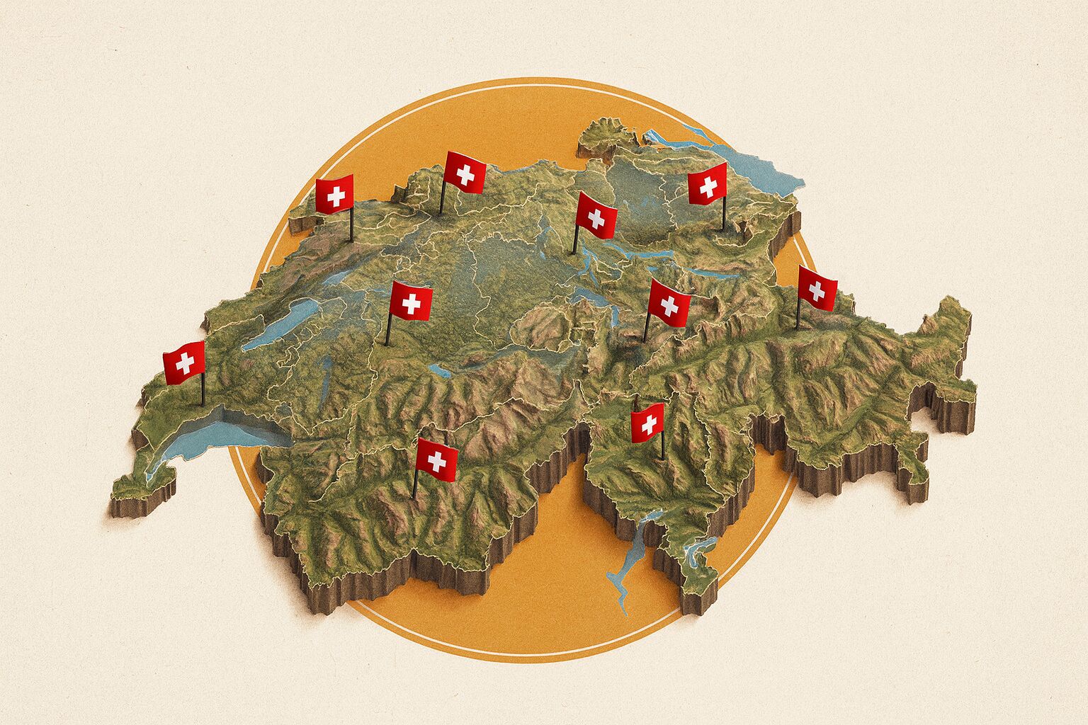Os 26 cantões suíços continuam a operar como pequenas entidades federadas, e, por isso, mantêm constituições, parlamentos e governos próprios. Além disso, eles possuem competências amplas, que incluem educação, saúde, segurança e impostos. Embora exista coordenação com o governo federal, cada cantão decide localmente grande parte das políticas públicas.