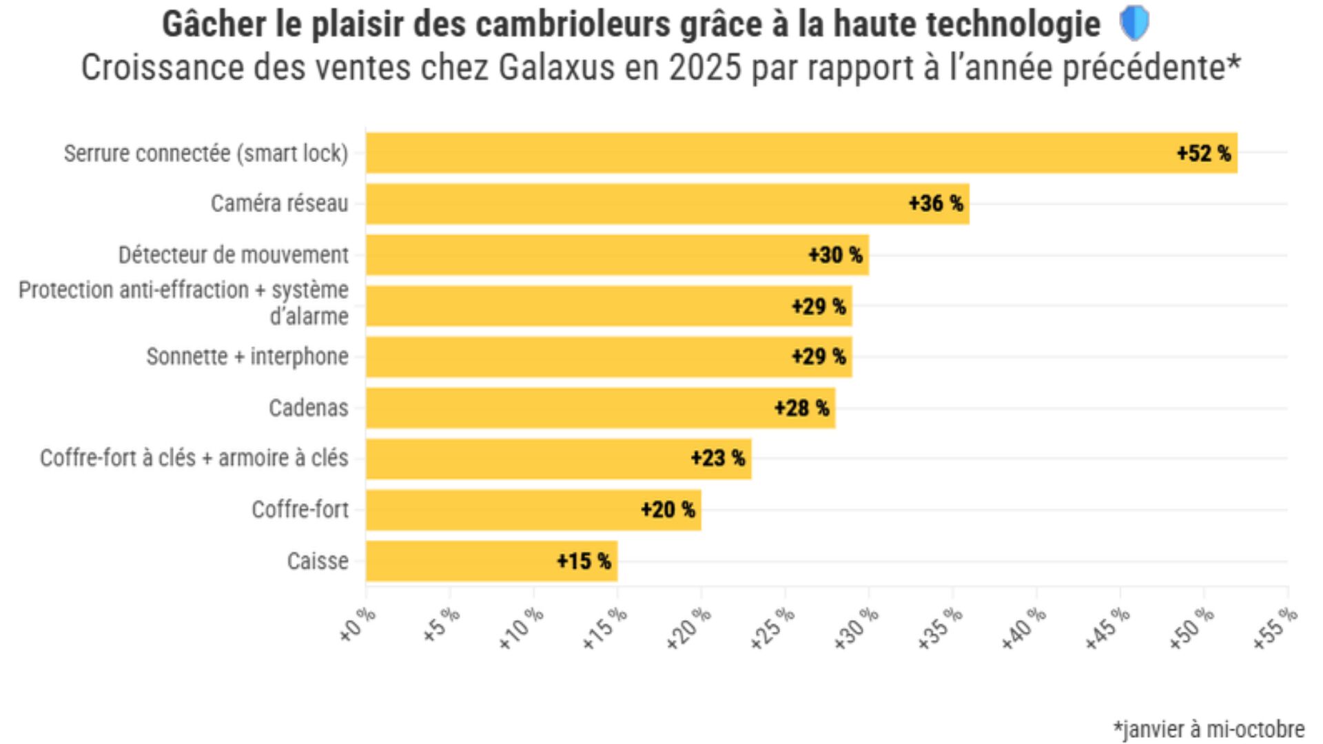 Para além das serraduras inteligentes, outros produtos tradicionais também registaram aumentos notáveis nas vendas. Por exemplo, as câmeras de vigilância cresceram 36%, enquanto os detetores de movimento aumentaram 30%. Igualmente, os sistemas de proteção antirroubo e alarmes verificaram um aumento de 29% face ao ano anterior.