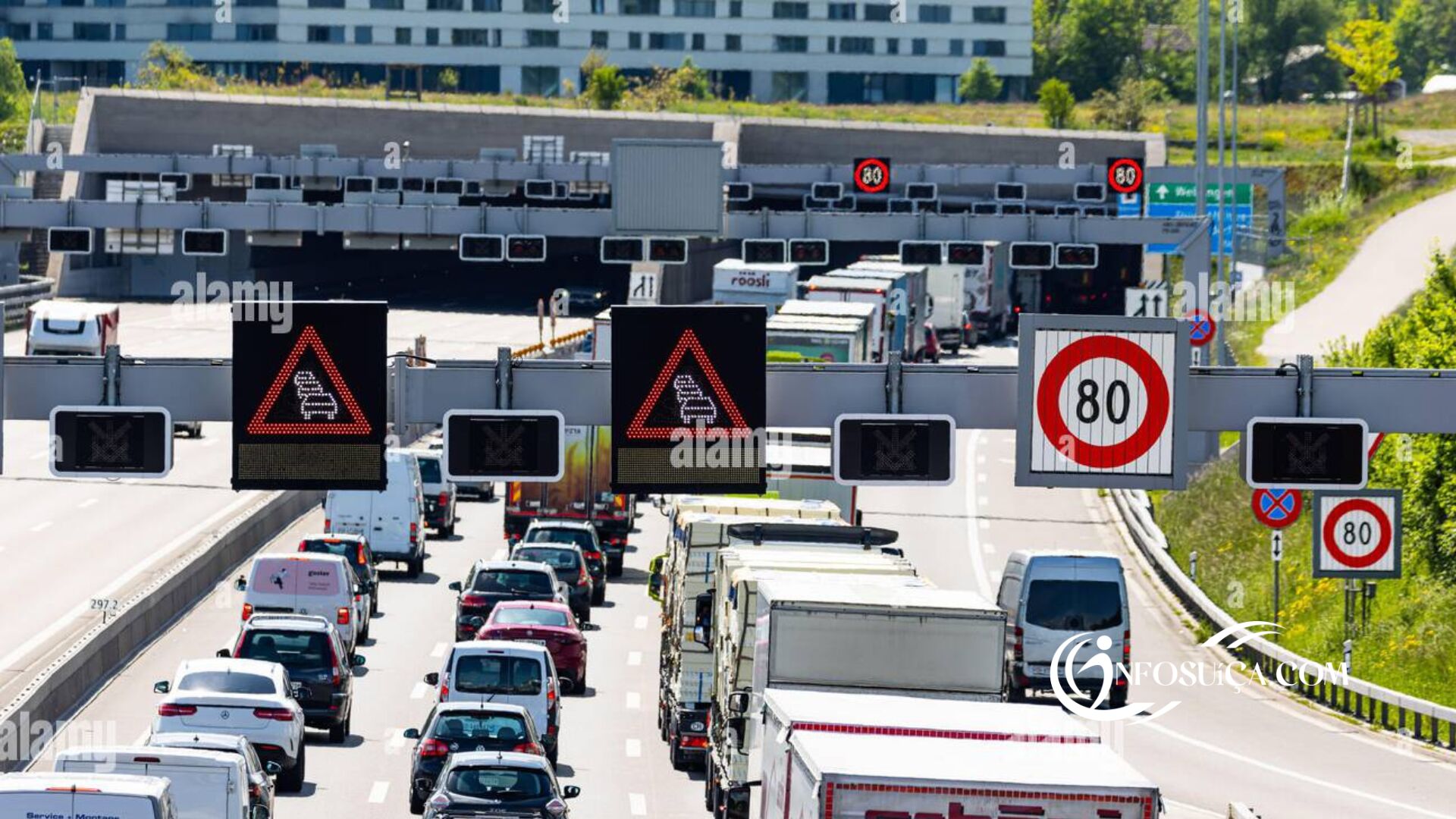 Suíça quer limitar a velocidade a 80 km/h nas autoestradas: solução eficaz ou incómodo para os condutores?. Com o aumento constante do tráfego, o Governo suíço decidiu reduzir a velocidade máxima em várias autoestradas. Assim, pretende melhorar a fluidez e reduzir os engarrafamentos. Além disso, esta medida visa aumentar a segurança rodoviária e diminuir o impacto ambiental.