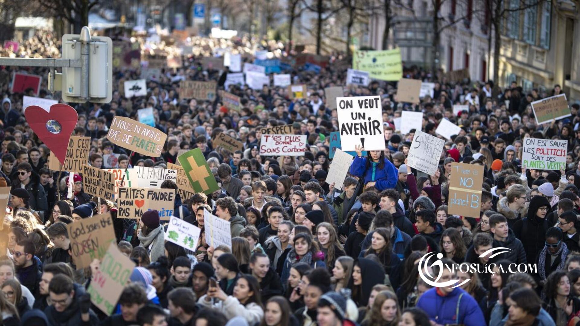 Em 2019, o movimento climático na Suíça atingiu o auge, reunindo dezenas de milhares de pessoas em Berna.